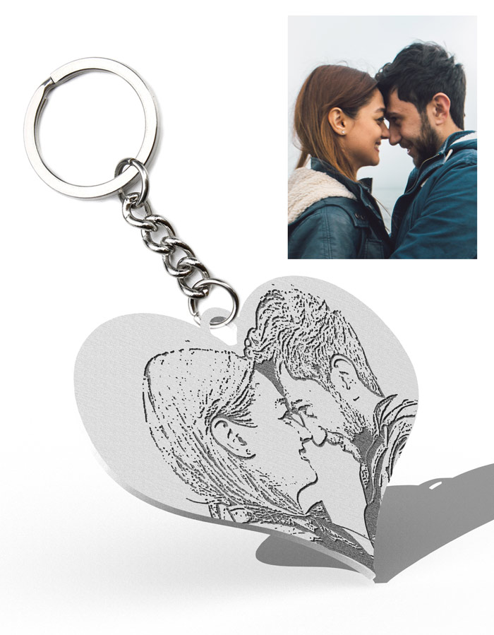 מחזיק מפתחות עם חריטה בעיצוב אישי של לב מתכתי.