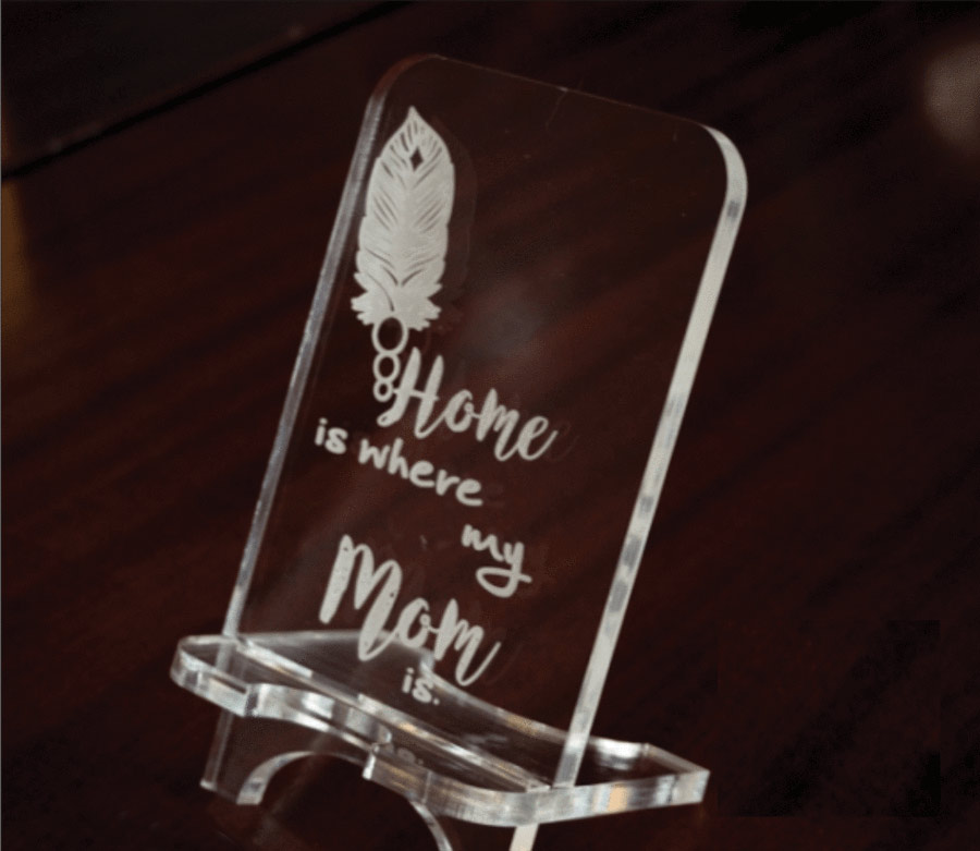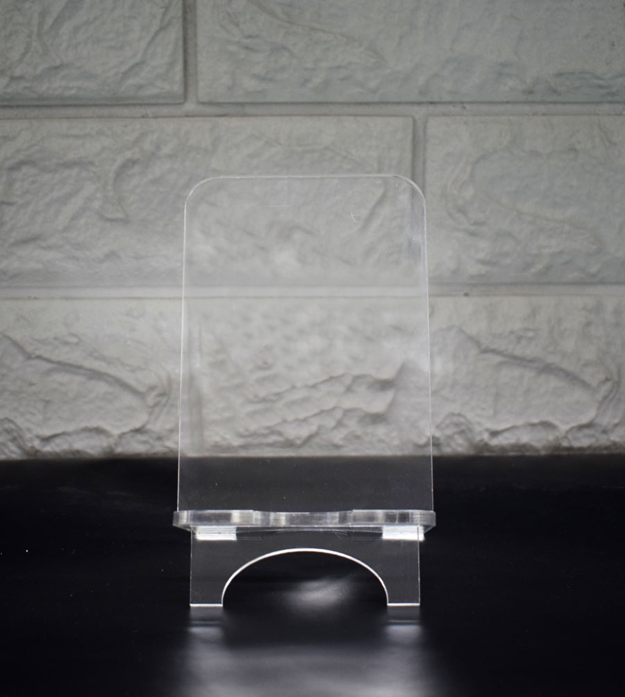 מעמד לטלפון בעיצוב אישי סטנד פרספקס שקוף לסמארטפון עם הקדשה אישית.