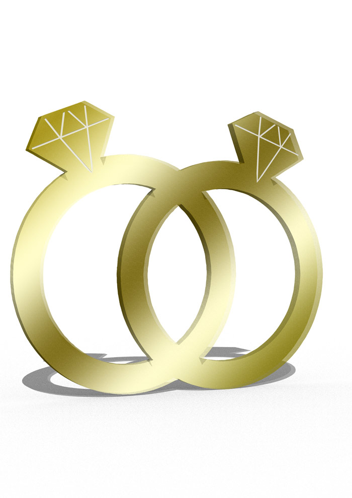 קישוט יפיפה בחיתוך וחריטה של זוג טבעות מפרספקס מראה זהב. קישוט נהדר לחתונות!