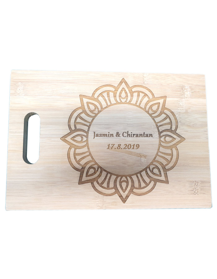 קרש חיתוך עם הקדשה אישית בחריטת לייזר.